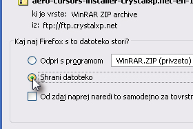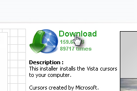 Odprite spletno stran, iz katere bomo prenesli Aero kurzorje.