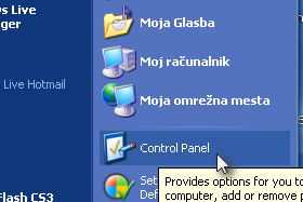 Sedaj kliknite na Start > Nadzorna plošča ali Control panel.