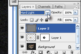 Novemu layerju določite senčenje na Hard Light (glej sliko).