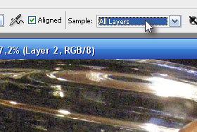 Izberite orodje Clone Stamp Tool (bližnjica je tipka S).