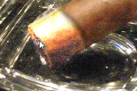 Sedaj pa z miško z izbranim orodjem počasi ustvarite ožgane črte pri cigari (glej sliko).