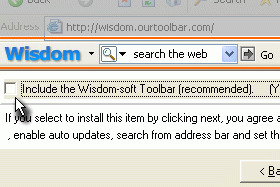 Pri tretjem zaslonu priporočam, da odznačite instalacijo Include the Wisdom-soft Toolbar, ker za samo delovanje program ni potreben in ni nobene potrebe, da se na računalnik nalagajo stvari, katere se ne uporabljajo. |