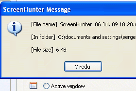 Odpre se okno, kjer se izpiše velikost shranjene slike ter na katero mesto se je shranila slika.