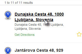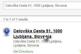 Spletna stran vam bo pokazala več iskalnih zadetkov, če ste se pri iskanju zmotili ali pa obstaja več istih ulic.