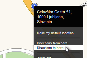Kliknite na ikono z desnim miškinim gumbom in tokrat v novem oknu izberite Directions to here. |