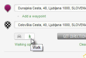 Sedaj smo določili pot in vrsto pot. Vmes lahko dodate še kako vmesno lokacijo, če želite (Add a waypoint).