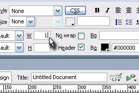 V polje za širino (W) določite 1 in ozadje celice s črno barvo.