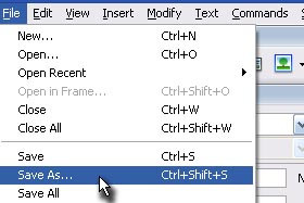 Kliknite na File in izberite Save As... Potem pa še pritisnite tipko F12 za ogled kreacije v brskalniku. |
