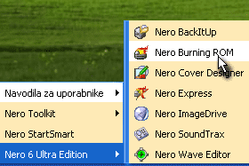 Za snemanje bomo uporabili program Nero Burning ROM.
