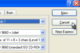 Ker pa že imamo datoteko s sliko CD-ja, katera vsebuje vse potrebne podatke, v tem pogovornem oknu pritisnemo na tipko Cancel. |