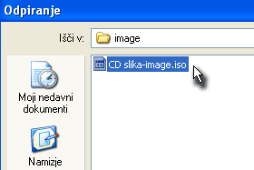 Odpre sem nam okno, kjer med mapami na disku poiščemo našo datoteko, ki vsebuje sliko CD-ja.