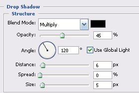 Kliknite sedaj na Layer, Layer Style in izberite Drop Shadow. Določite vrednosti, kot jih vidite na moji sliki (lahko pa jih seveda tudi poljubno nastavljate). |