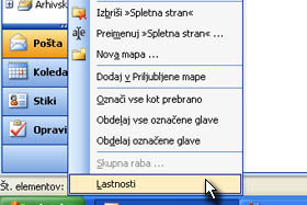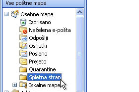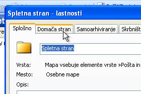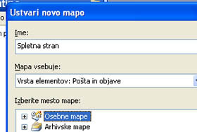 V polje ime vpišite Spletna stran (ali pa Intranet). Mapa naj vsebuje vrsto elementov: Pošta in objave. Mesto mape pa naj bo določeno Osebne mape. Potrdite še na gumb V redu. |