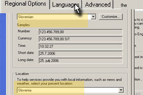 V obeh izbirnikih določite Slovenian. Zgoraj kliknite na zavihek Languages in nato na gumb Details ... |