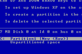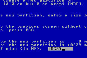 Ker v tej lekciji še nimamo nastavljenih particij, bomo ustvarili novo. Pritisnite tipko C. |