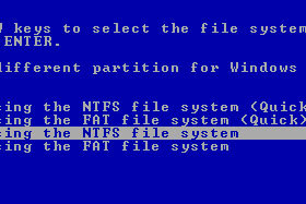 Izberite Format the partiton using the NTFS file system in pritisnite tipko ENTER. |