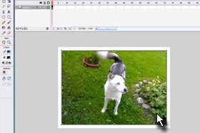 Označite v polju Timeline kvadratek (frame) pod številko 1, kliknite na sliko in spodaj v oknu properties določite Color Alpha in nastavite 0%.