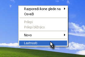 Kliknite sedaj na namizje z desnim miškinim gumbom in izberite Lastnosti.