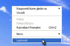 Kliknite na namizje z desnim miškinim gumbom in izberite Lastnosti. |