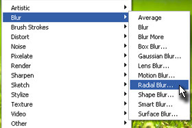 Kliknite na Filter, Blur in izberite Radial Blur...