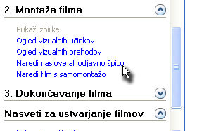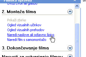Kliknite v polju Montaža filma na Naredi naslove ali odjavno špico.