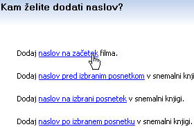 Dodali bomo napise pred začetkom predvajanja filma. Kliknite na Dodaj naslov na začetek filma. |
