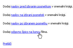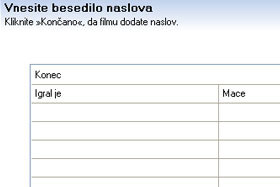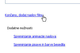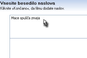 Napišite poljubno besedilo, ki e bo predvajalo na koncu filma (glej sliko).