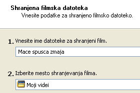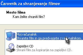 Film se je shranil v mapo Moji dokumenti in v mapo Moji videi.