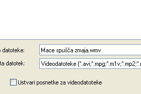 Prvo poskrbite, da ne bo označeno Ustvari posnetke za videodatoteke.