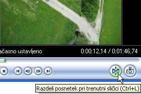 Potem pa kliknite na ikono Razdeli posnetek pri trenutni sličici.