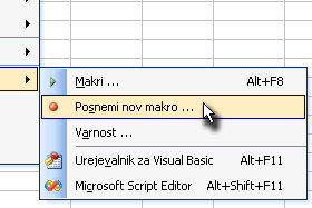 KO boste dokument shranili, kliknite na Orodja, Makro in izberite Posnemi nov makro..
