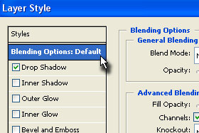 V oknu Layer Style kliknite na Blending Options: Default (glej sliko).