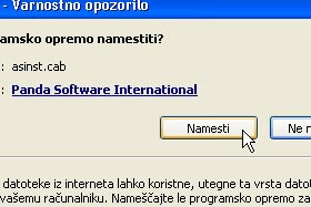 Varnostno opozorilo se prikaže, da se bo potrebna programska oprema namestila.