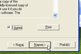 Jaz sem označil I Agree in kliknil na gumb Naprej.