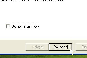 Ne označite Do not restart now in kliknite na gumb Dokončaj.