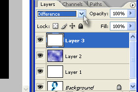 Novemu layerju tokrat določite senčenje na Difference (glej sliko).
