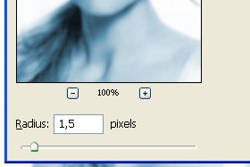 Odpre se novo okno. Nastavite Radius na 1,5 pixels in kliknite na gumb OK. |