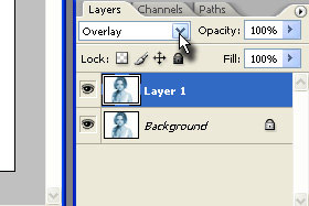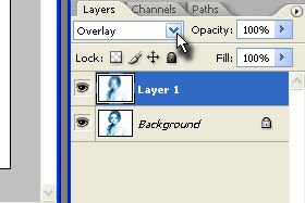 V paleti layerjev določite dupliciranemu layerju senčenje na Overlay (glej sliko).