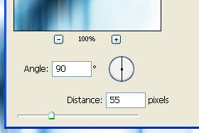 Kliknite zgoraj na Filter, Blur in izberite Motion Blur... Odpre se novo okno. Nastavite Angle 90 stopinj in Distance 55 pixels. Kliknite na gumb OK. |