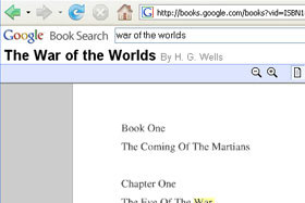 Vpišite v polje za iskanje poljubno knjigo ali avtorja. Jaz sem vpisal war odf the worlds. Kliknite na gumb Search Books. |