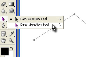 Držite z miško na orodju Direct Selection Tool (bližnjica je tipka A), da se vam prikažejo ostala orodja. |