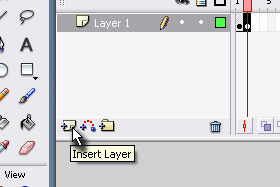 Označite Frame 1 tega layerja. Kliknite nanj z desnim miškinim gumbom in izberite Insert Blank Keyframe. |