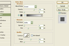 Sedaj pa gremo pod Layer, Layer style, Outter Glow...
