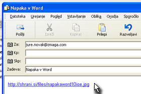Odprite sedaj e-poštni program in ustvarite novo sporočilo. Potem pa v sporočilu pritisnite tipki CTRL + V, da boste naslov prilepili. To lahko storite tudi preko programa Messenger, Google Talk... |