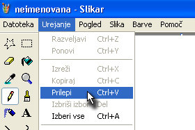 V Slikarju kliknite na Urejanje in izberite Prilepi.
