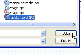 V mojem primeru sem označil datoteko napaka-word.JPG. |