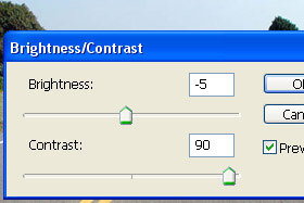Brightness nastavite -5 in Contrast 90. Če končni rezultat ne bo zadovoljiv, potem se tukaj malce poigrajte. Kliknite na gumb OK. |