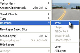 Kliknite zgoraj na Layer, Rasterite in izberite Type.