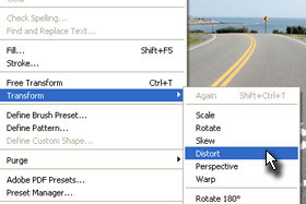 Kliknite zgoraj na Edit, Transform in izberite Distort.