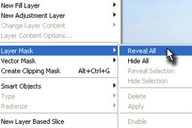 Kliknite zgoraj na Layer, Layer Mask in izberite Reveal All.